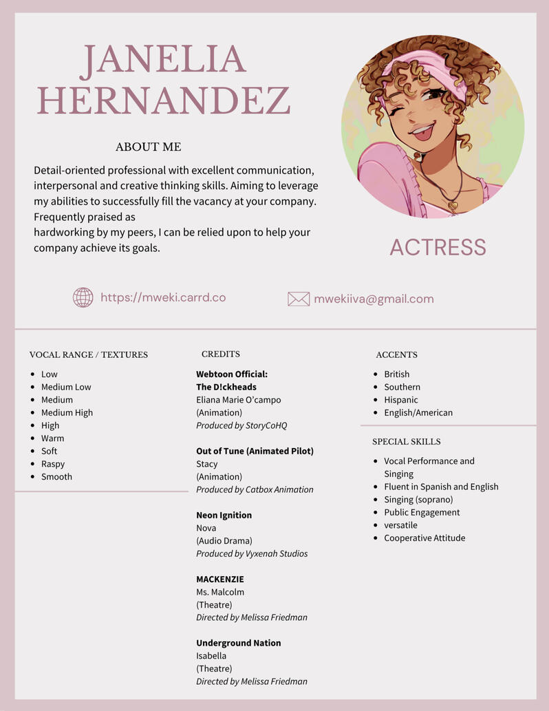 Hello, I’m Janelia Hernandez, a Dominican-American voice actress based in New York City. I specialize in delivering clear, expressive, and versatile voice performances across a range of genres, from animation and video games to commercials and narration.I take pride in being detail-oriented, reliable, and collaborative in every stage of production. With strong communication skills and a creative approach to performance, I strive to ensure each project is handled with precision and authenticity.I’m dedicated to helping bring your vision to life through voice.